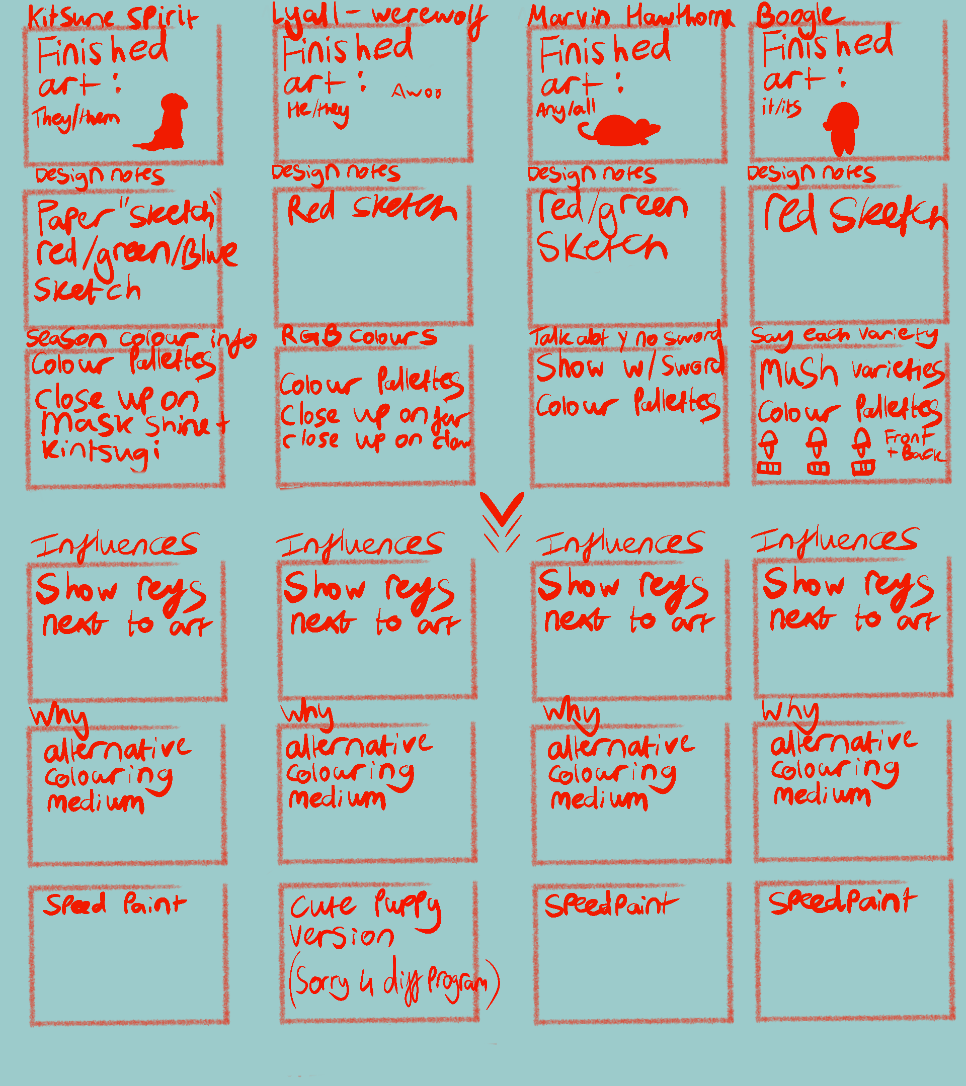 Currently working on Kitsune Spirit and Lyall. Marvin and Boogle are complete and their final versions can be seen in the above pictures!
